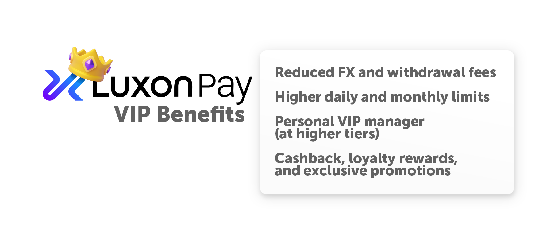 For more active users, LuxonPay offers a tiered VIP system that rewards higher usage with better rates, higher limits, and extra perks.