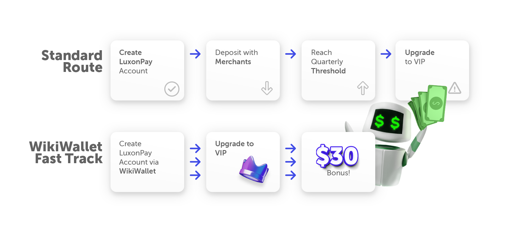 Special offer: Upgrade your LuxonPay account without any deposit requirements through Wikiwallet, and claim your $30 welcome bonus!
