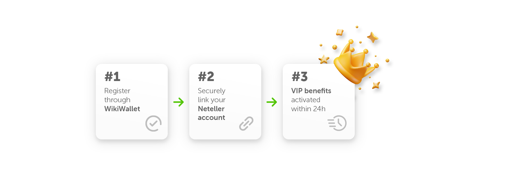 WikiWallet provides a direct way for fast Neteller VIP qualification. When you create or connect your Neteller account through WikiWallet, you get benefits, such as: